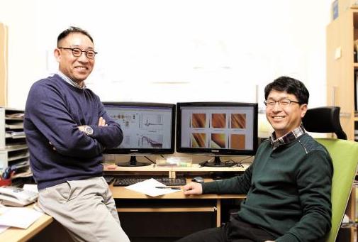 권오필 교수 공동 연구팀이 물질 내에서의 빛의 속도와 특성을 제어할 수 있는 새로운 타입의 비선형 광학 결정 소재를 개발하는 데 성공했다. 이에 빛의 성질을 조절해 활용해야 하는 초고속 광통신과 레이저, 테라헤르츠 발생기 등에 널리 활용될 수 있을 전망이다. 우리 학교 권오필 교수(응용화학생명공학과·대학원 분자과학기술학과, 사진 오른쪽)와 이상민 한국과학기술원(KAIST) 교수(물리학과, 사진 왼쪽)는 다양한 광변환 소자에 적용할 수 있는 유기 비선형광학 결정 소재 개발에 성공했다. 이번 연구 성과는 소재 분야 저명 학술지인 5월22일자 표지 논문으로 선정됐다. 논문 제목은 “고효율 비선형광학 특성과 테라헤르츠 발생 효율을 나타내는 수소결합 양이온-음이온 조립 기반의 단결정(Single Crystals Based on Hydrogen‐Bonding Mediated Cation–Anion Assembly with Extremely Large Optical Nonlinearity and Their Application for Intense THz Wave Generation)” 이다.유기 비선형광학 결정은 물질 내의 빛의 파장이나 굴절율과 같은 빛의 성질을 조절할 수 있는 광변환 소재로 최근 높은 관심을 받고 있다. 비선형광학 결정 소재를 이용하면 높은 구동안정성을 기반으로 초고속 광통신 소자, 레이저, 테라헤르츠 발생기 등에 쓰이는 고효율 광변환 소자를 구현할 수 있다. 광변환 소자는 전기적 신호를 빛의 신호로 바꾸어 전기적 정보를 광통신 케이블을 통해 송수신할 수 있으며, 빛의 파장을 바꾸거나 선택적으로 추출하여 다양한 광원으로 사용할 수 있다. 그동안 고효율의 광변환 소자를 개발하기 위해 다양한 종류의 무기 결정이 활용되어 왔지만, 낮은 비선형광학 특성으로 효율이 떨어져 상업화에 어려움이 있었다. 또한 고분자 기반의 비선형광학 소재는 높은 비선형광학 특성을 나타냈지만, 장시간 사용 시 비선형광학 특성이 없어지는 문제점이 발생하여 구동 안정성에 한계를 보여 왔다. 기존에 개발된 유기 비선형광학 결정들의 경우, 다양한 광변환 소자에 적용하기에는 어려움이 많았다. 대부분의 고효율 비선형광학 결정이 주로 양이온-음이온 병렬 구조로 배향되어 있었기 때문. 다른 화학구조로 이루어진 여러 유기결정이 만일 유사한 배열구조를 가지게 되면, 다른 물질임에도 불구하고 유사한 광학 특성 및 물질 특성이 나타난다. 따라서 양이온-음이온 병렬 구조를 가지는 광학 소재만으로는 각기 다른 광변환 소자들에서 요구되는 다양한 광학 특성 및 물질 특성을 충족할 수 없었다. 이에 연구팀은 양이온과 음이온 사이가 수소 결합으로 연결된 직렬 구조를 도입하면 높은 비선형 광학 특성에서 기인하는 높은 광변환 특성을 나타낼 수 있을 것이라는 점에 주목했다. 실제로 양이온-음이온 직렬 구조 기반의 새로운 유기 비선형광학 결정은 지금까지 보고된 대부분의 양이온-음이온 병렬구조 기반 유기 결정보다 높은 비선형 광학 특성을 나타냈다. 테라헤르츠 발생에 실제 적용했을 때 효율이 높아, 약한 빛으로도 센 강원을 만들 수 있었던 것. 연구팀은 “기존의 유기 비선형광학 결정은 주로 양이온-음이온 병렬구조를 기반으로 하고 있어 다양한 광변환 소자로의 적용에 어려움이 있었다”며 “이번에 개발된 양이온-음이온 직렬구조 기반의 새로운 유기 비선형광학 결정은 기존 결정과는 다른 광학적 특성을 지니고 있어 여러 광변환 소자에 활용될 수 있다”고 설명했다.