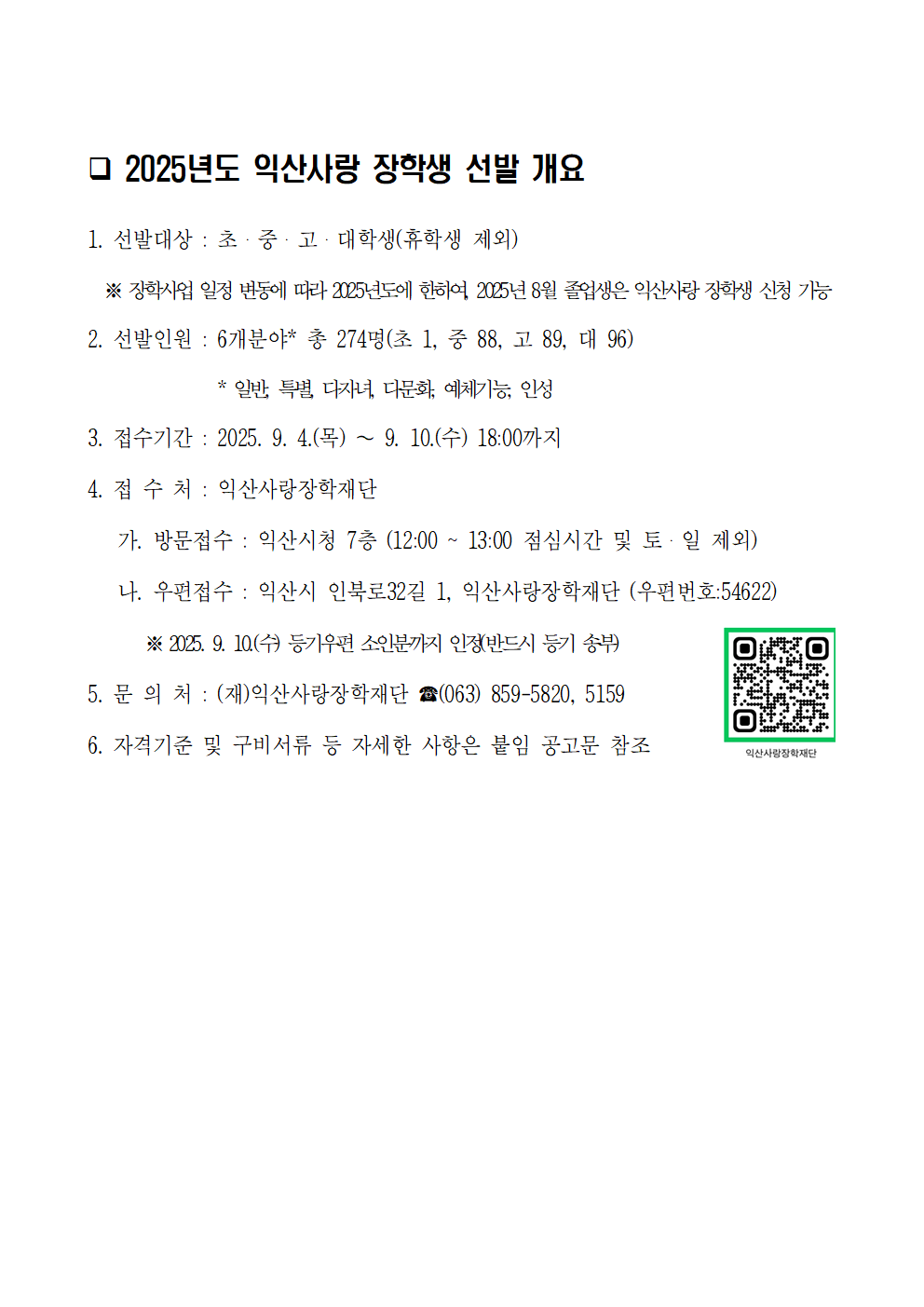 [교외장학] 2025년도 익산사랑 장학생 선발