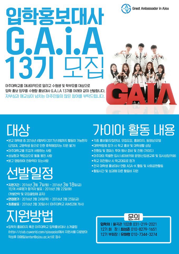 입학홍보대사 G.A.i.A 신입 기수 13기 모집
