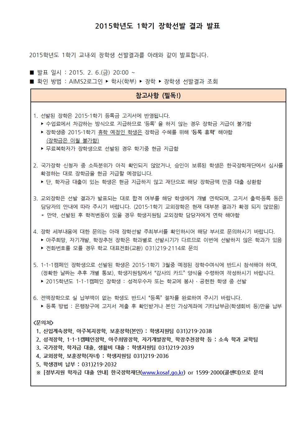 | 106 | 장학 | 학생지원팀 | 2015-02-06 | ||