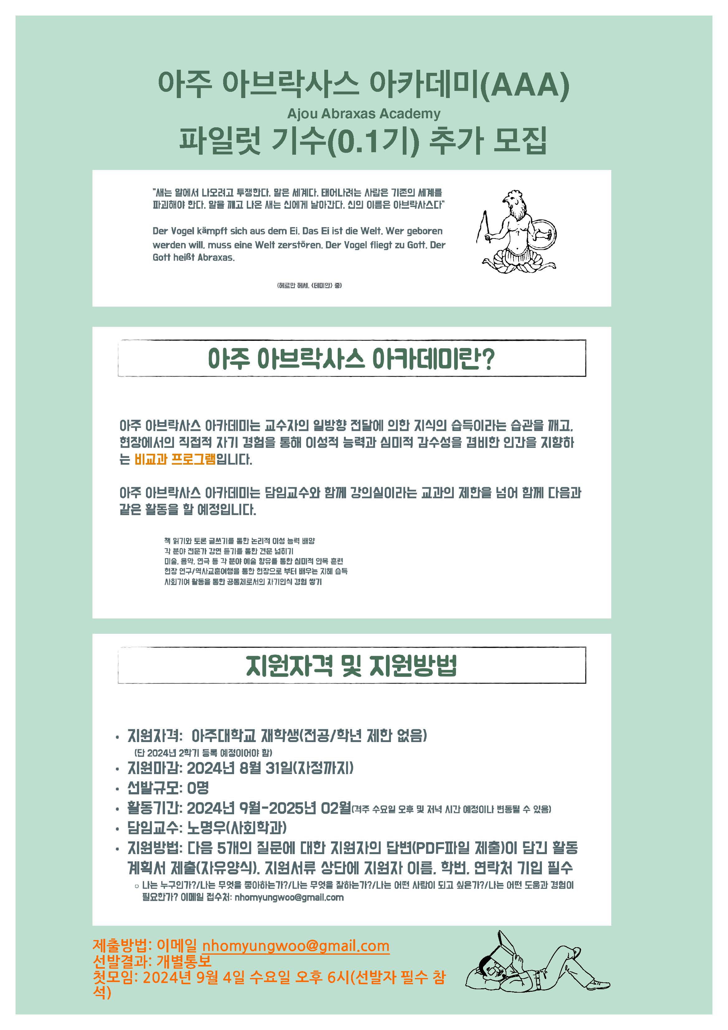 [비교과] 아주 아브락사스 아카데미(AAA) Ajou Abraxas Academy 파일럿 기수(0.1기) 추가 모집