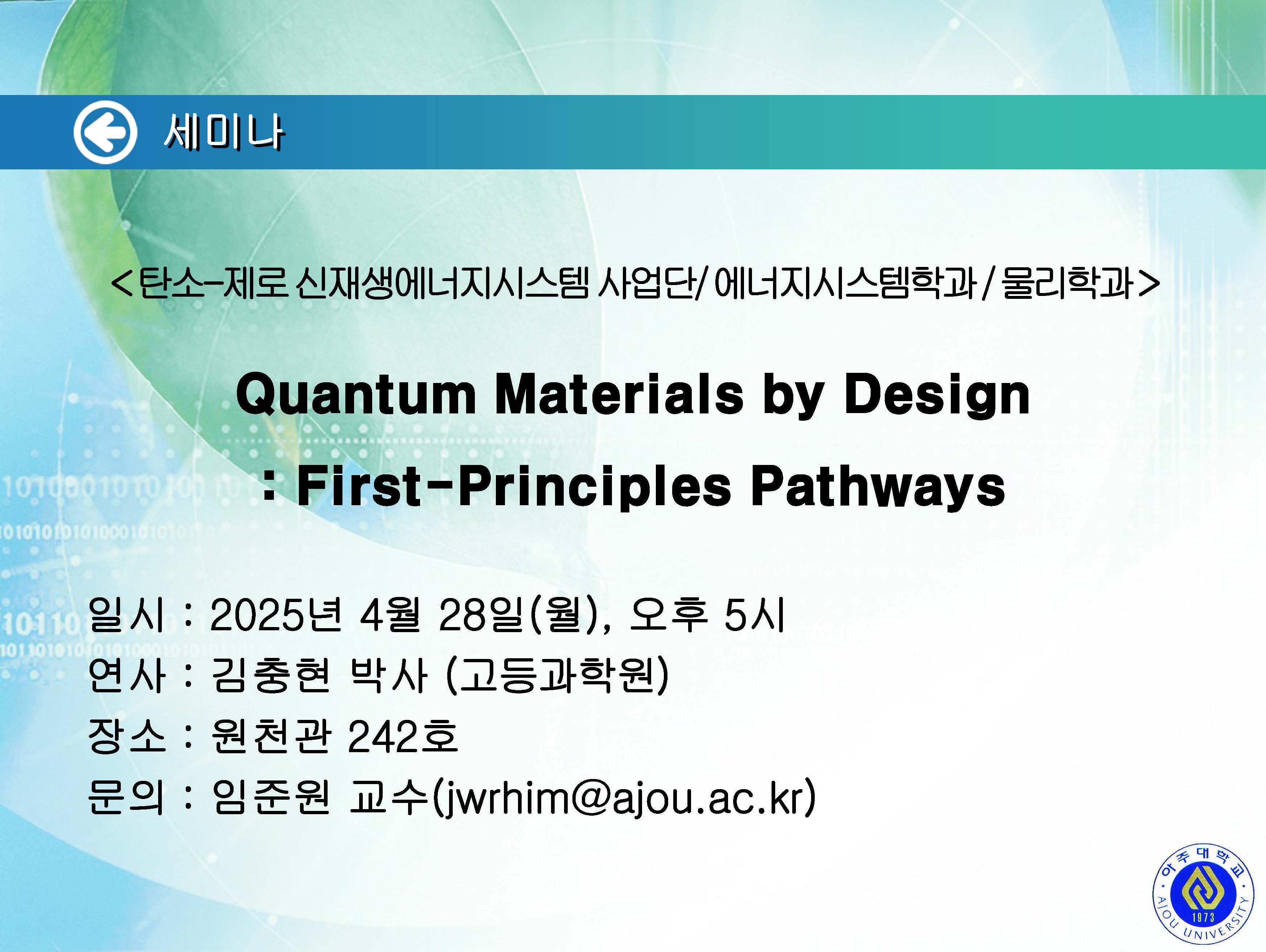 | 1743 | 세미나/포럼 | 교내 | 2025-04-22 | ||